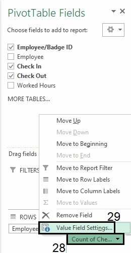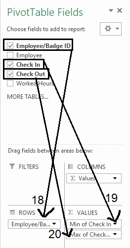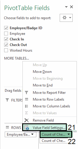 18. Drag “Employee/Badge ID” ke “ROWS”